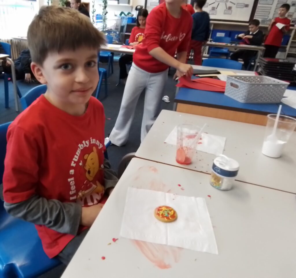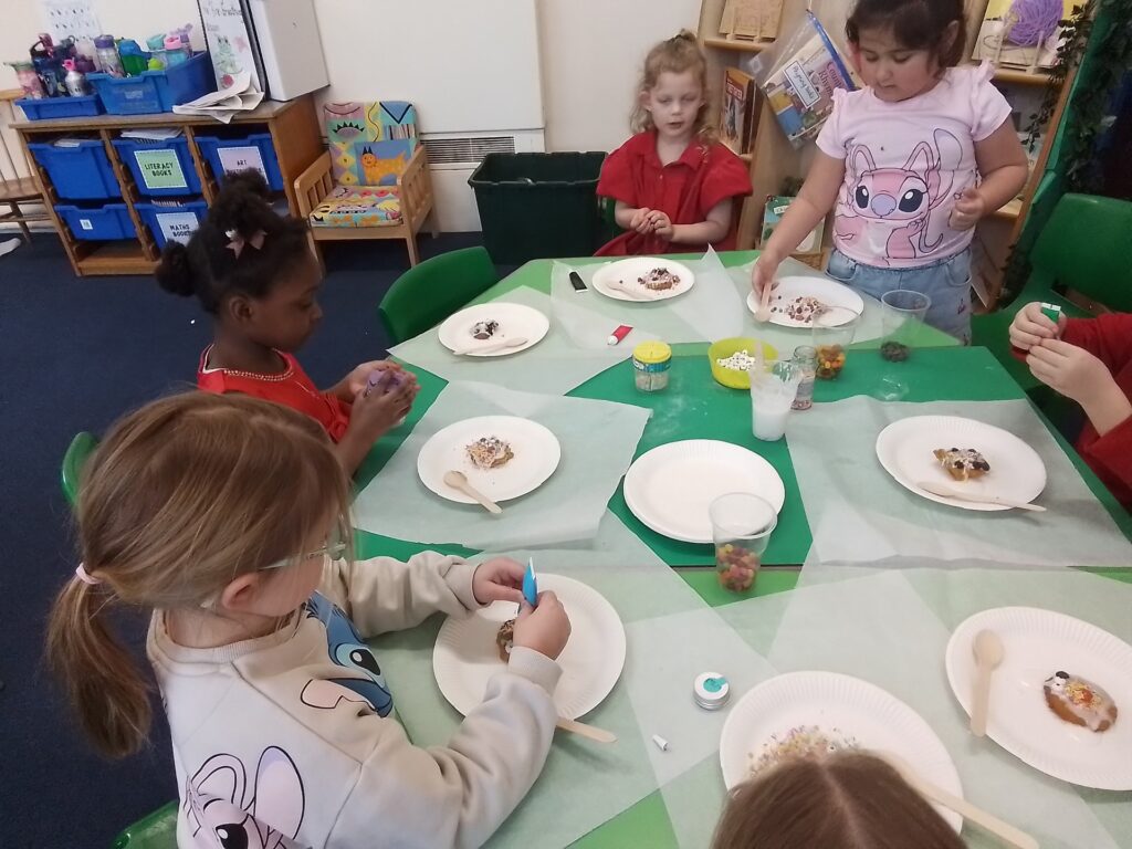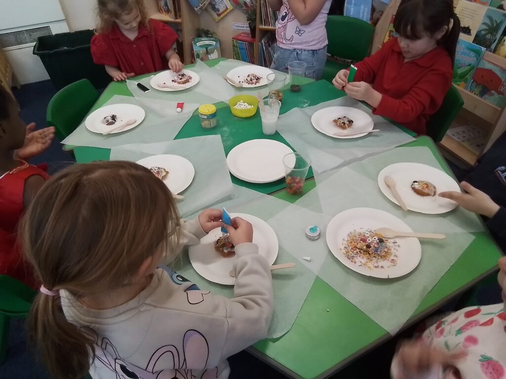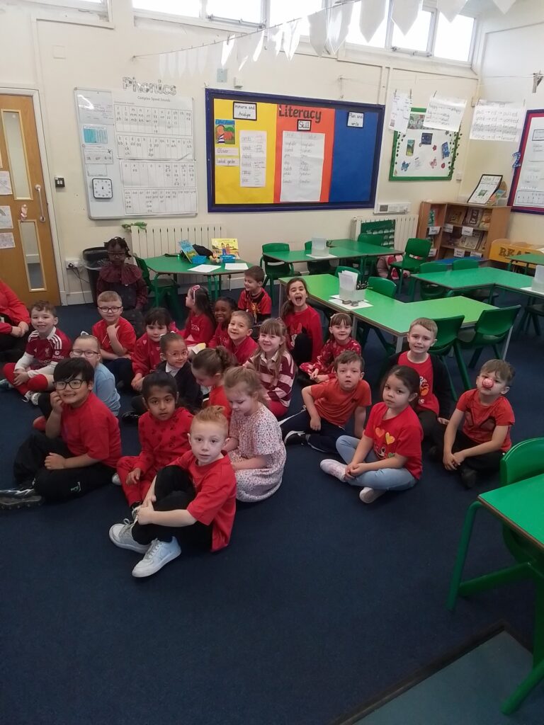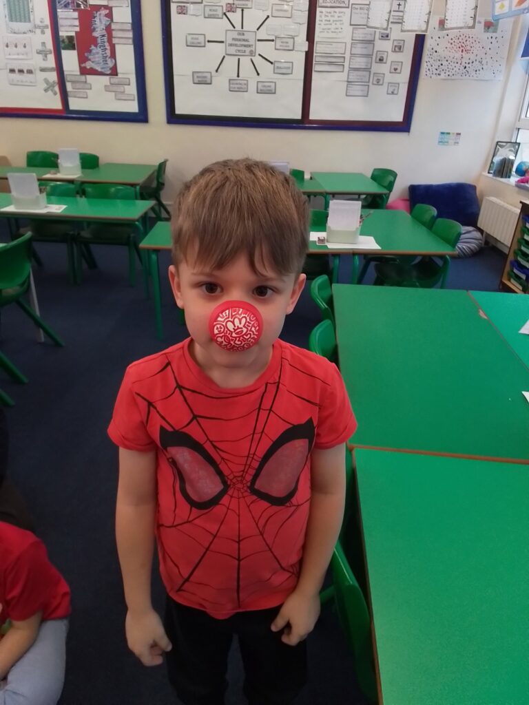 The children and staff wore a variety of red clothes to celebrate Red Nose Day. The children also enjoyed telling jokes and decorating biscuits as well as a range of fun activities. Thank you to all families who helped us to raise £108.