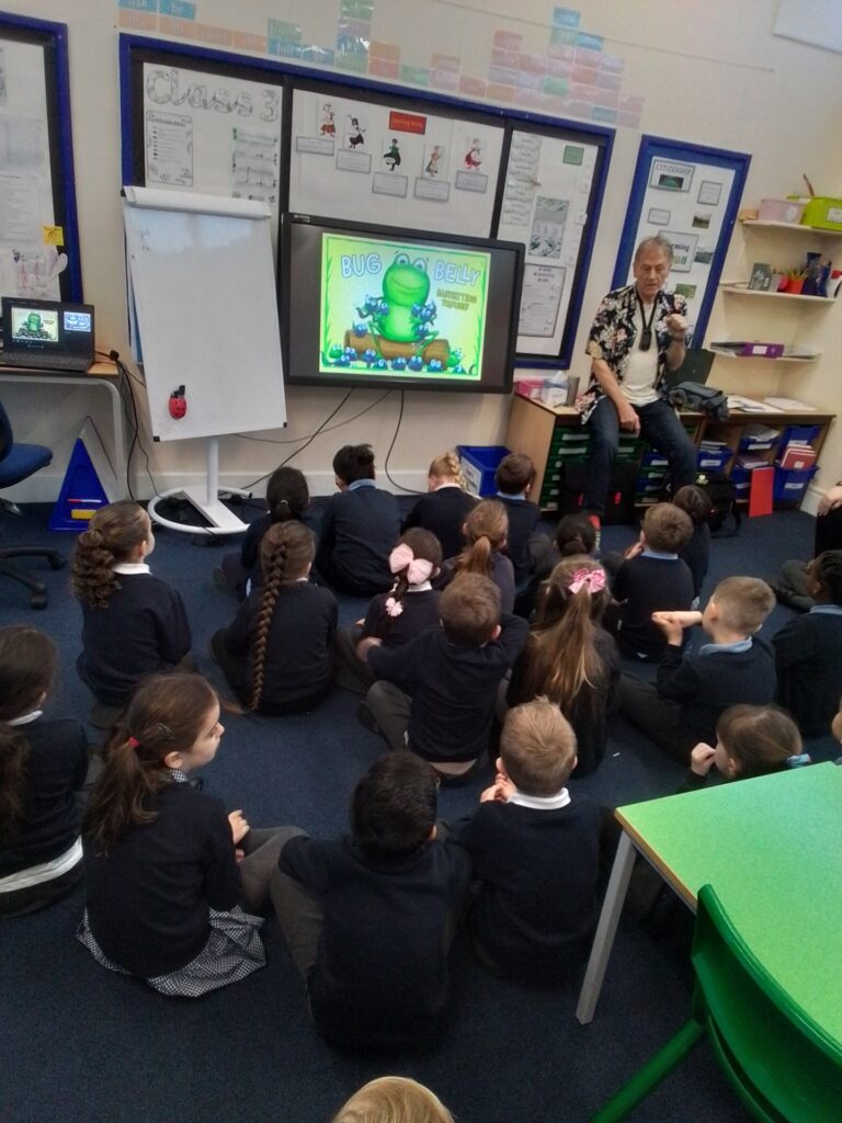 Paul spent time with children in Y1 to Y6 reading his books and spending a little bit of time talking to the children about how he created the characters and the stories for the characters.