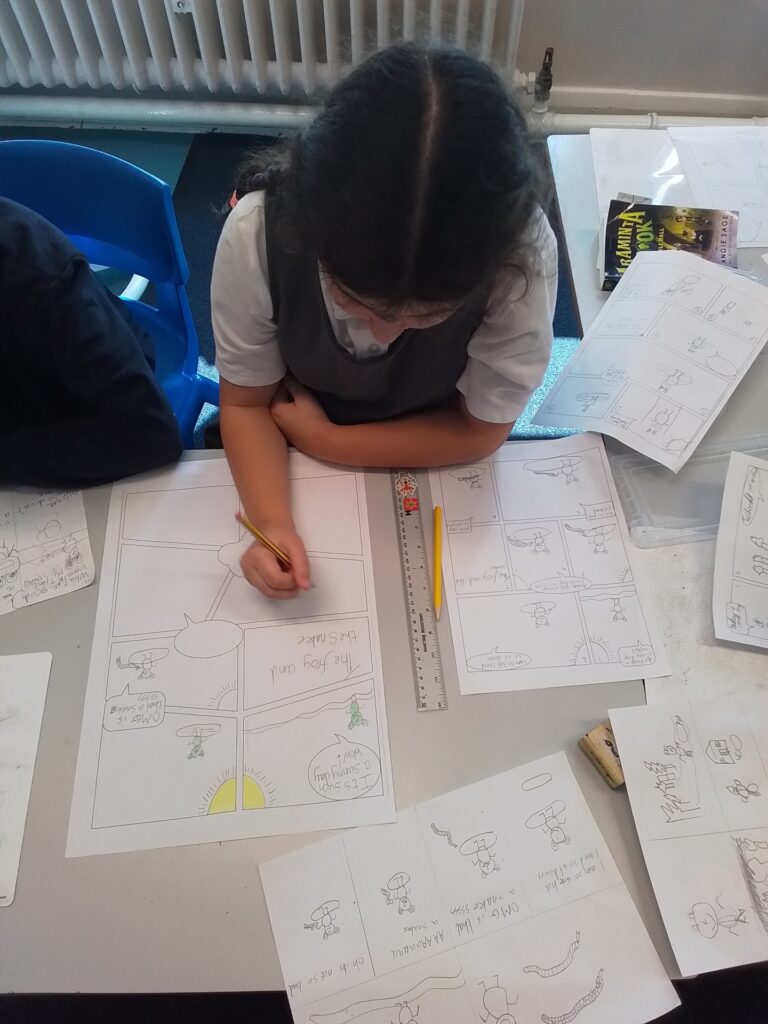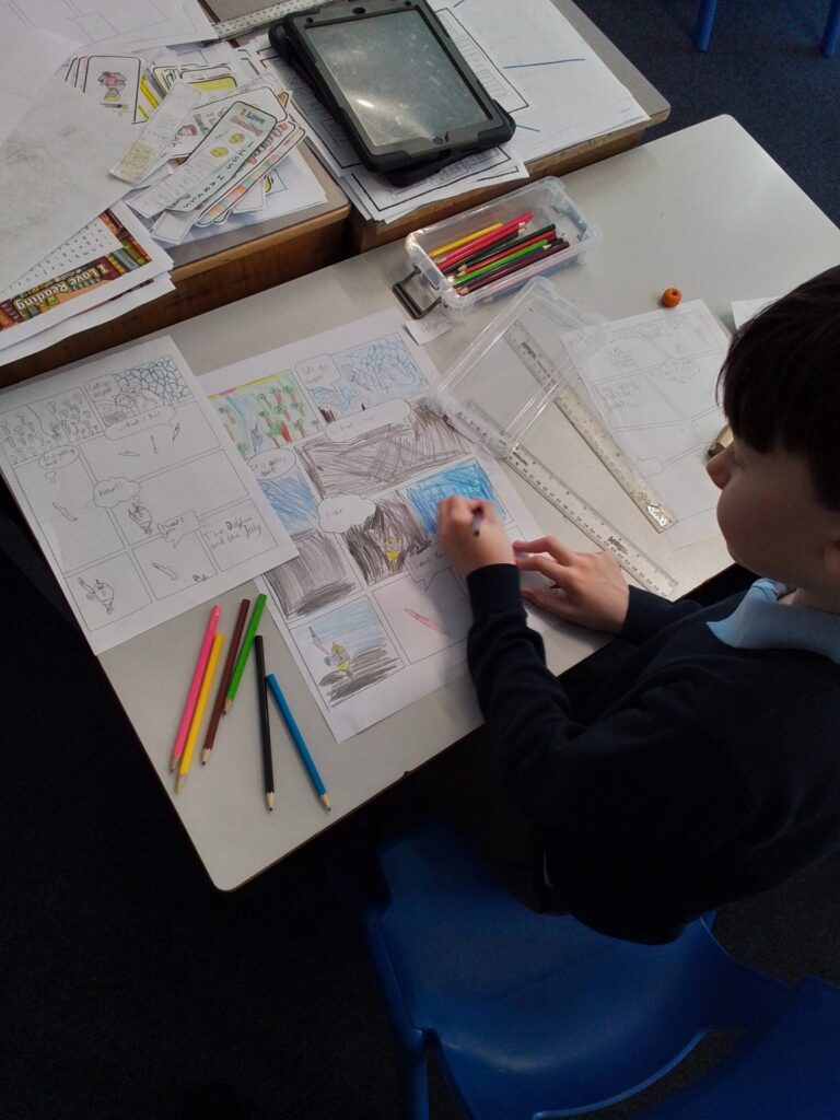 On Thursday 5th March the author Paul Morton joined us for World Book Day. Paul is an author who has written the Bug Belly Books and is currently creating his first graphic novel, which he shared some sneak previews of whilst in school.